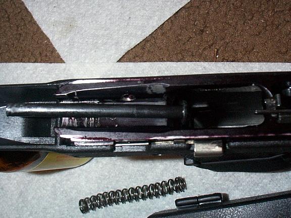 Now pull the guide rod out and up (actually down for the gun, but it is upside