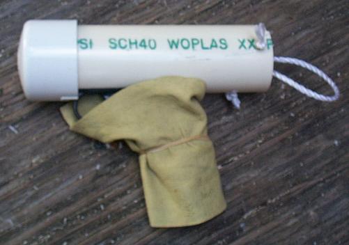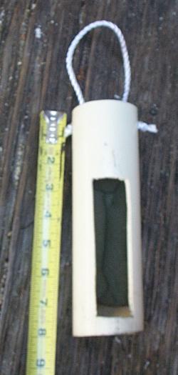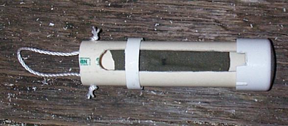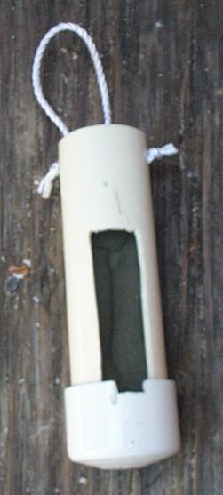 I got an 8" long piece of 2 inch PVC, a 2 inch PVC cap, a piece of small rope,